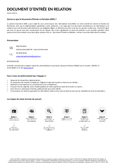 Mon activité Conseil en investissement financier, développement et suivi patrimonial.