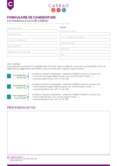 Il s'agit d'établir une relation privilégiée avec les Présidents et Vice-Présidents afin de les aider à exploiter au mieux les outils que propose Carbao.
