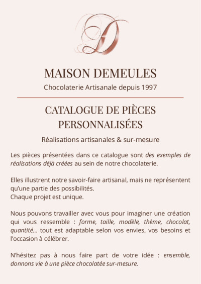 Nous nous spécialisons dans la création de recettes uniques et de formes originales de chocolat, adaptées aux saisons. De plus, nous sommes en mesure de répondre à des demandes spécifiques de nos clients en créant des chocolats personnalisés pour mieux répondre à leurs attentes.