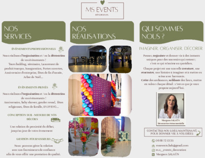 Mon coeur de cibleClients professionnels ou particuliers, qui veulent confier la décoration et l'organisation de leur événement à une professionnelle, pour vivre pleinement ce moment unique sans stress.