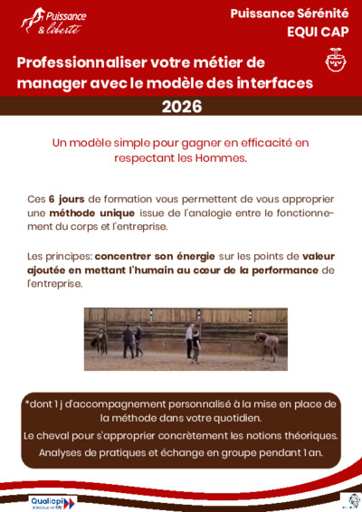 J'ai une activité d'équicoaching pour les particuliers. Me contacter pour en savoir plus.